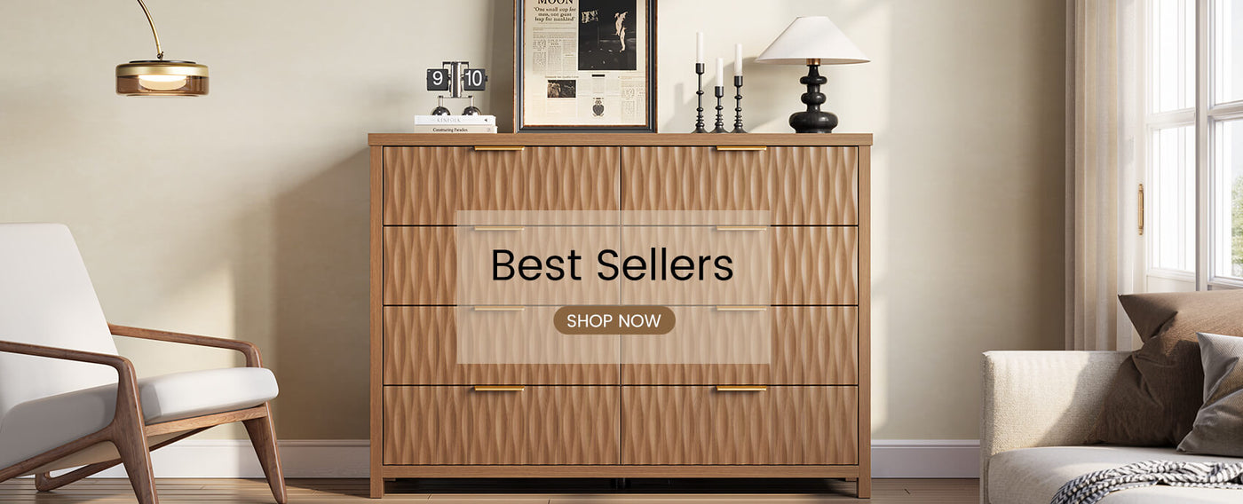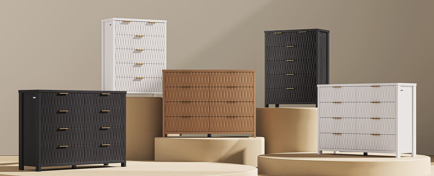 SUCSSRICH 43.7 Inch Dresser with 6 Drawers Tall Drawers for Bedroom Modern Chest of Wood Drawer Organizer for Living Room Hallway Entryway