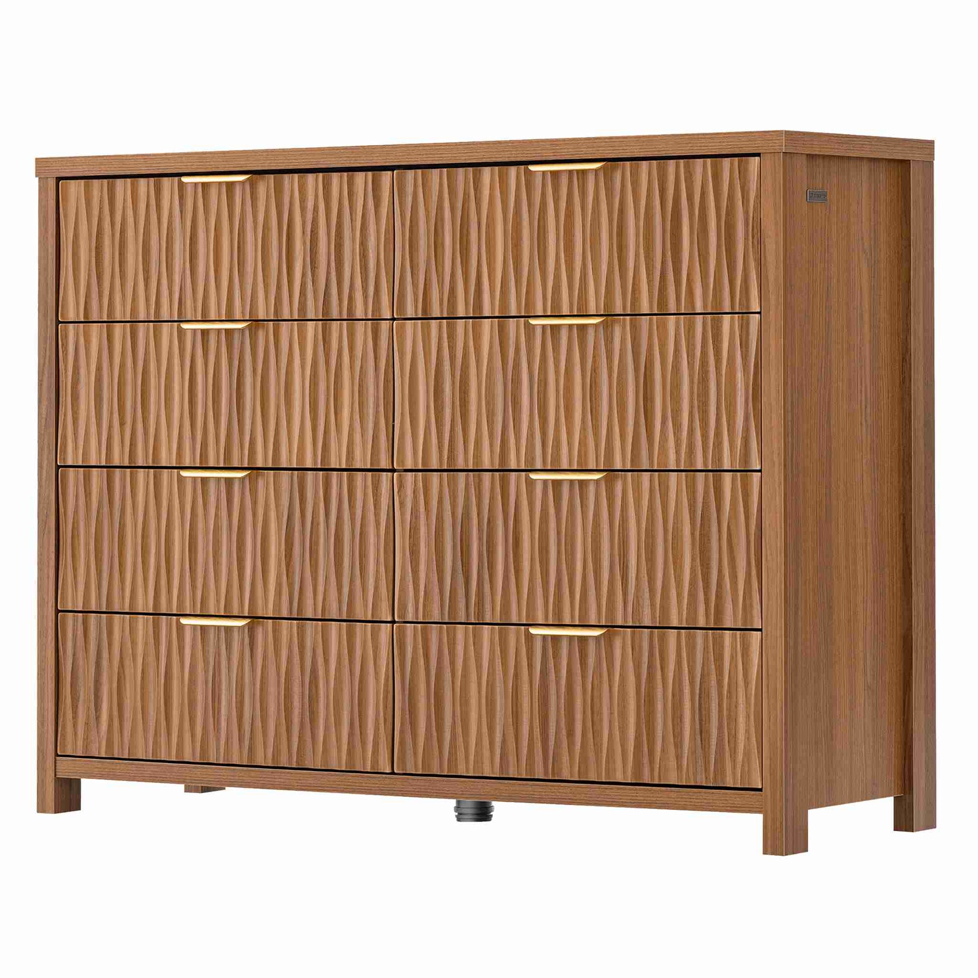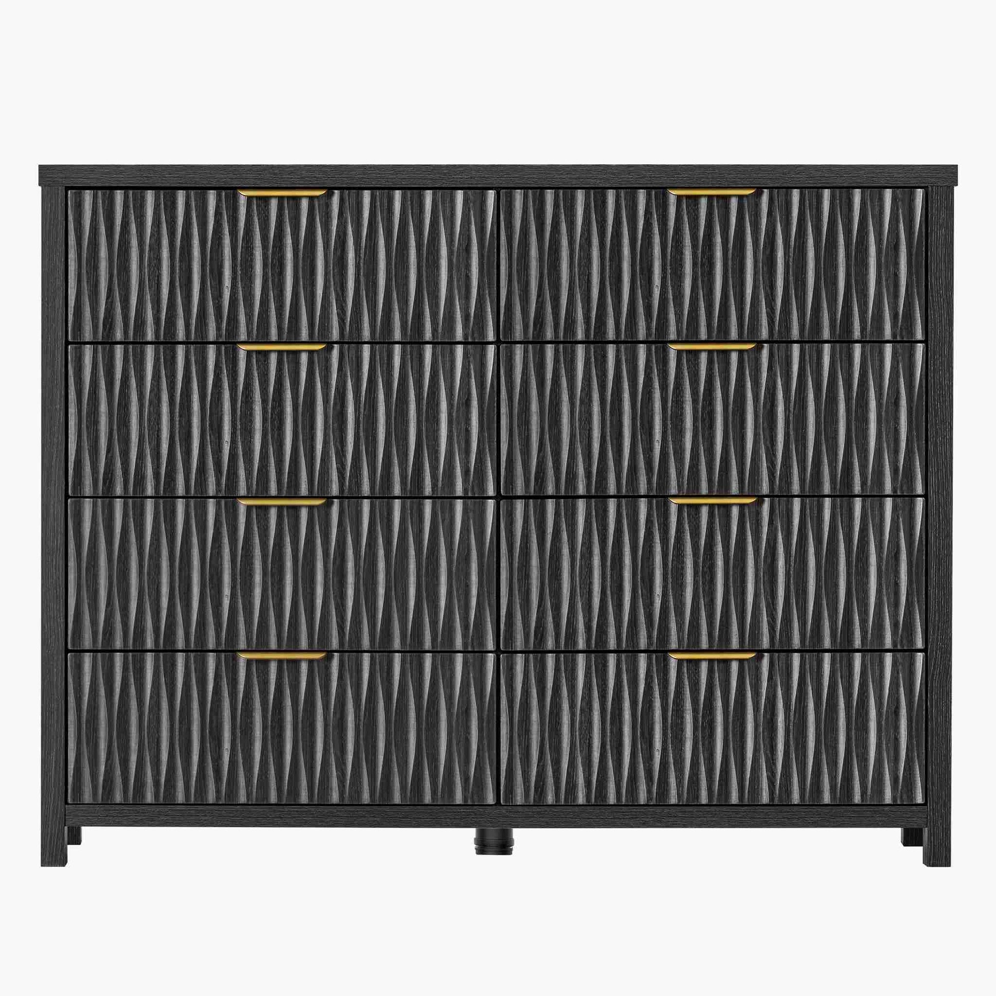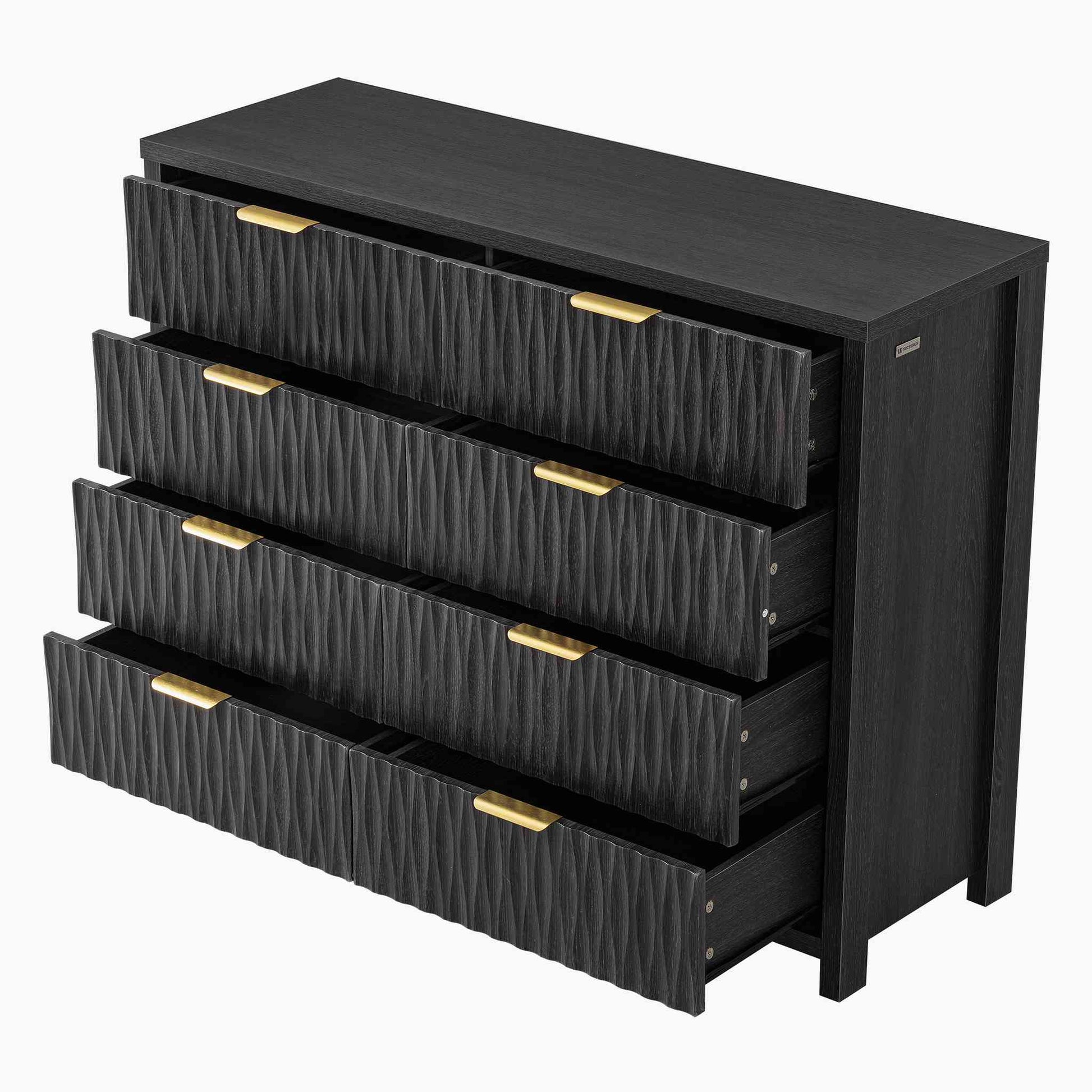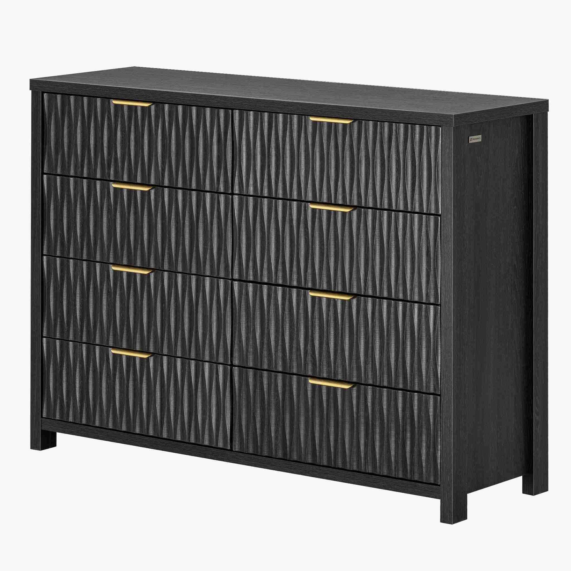 【Stunning Design】This 8-drawer dresser for the bedroom has a unique design. The legs have anti-skid pads, and support feet are added at the bottom to improve stability. Each drawer is supported by a high-quality metal slide rail and matched with a golden handle to ensure smooth and noiseless pull-out. The anti-tip device designed into the back of the chest of drawers provides additional protection and greater safety.