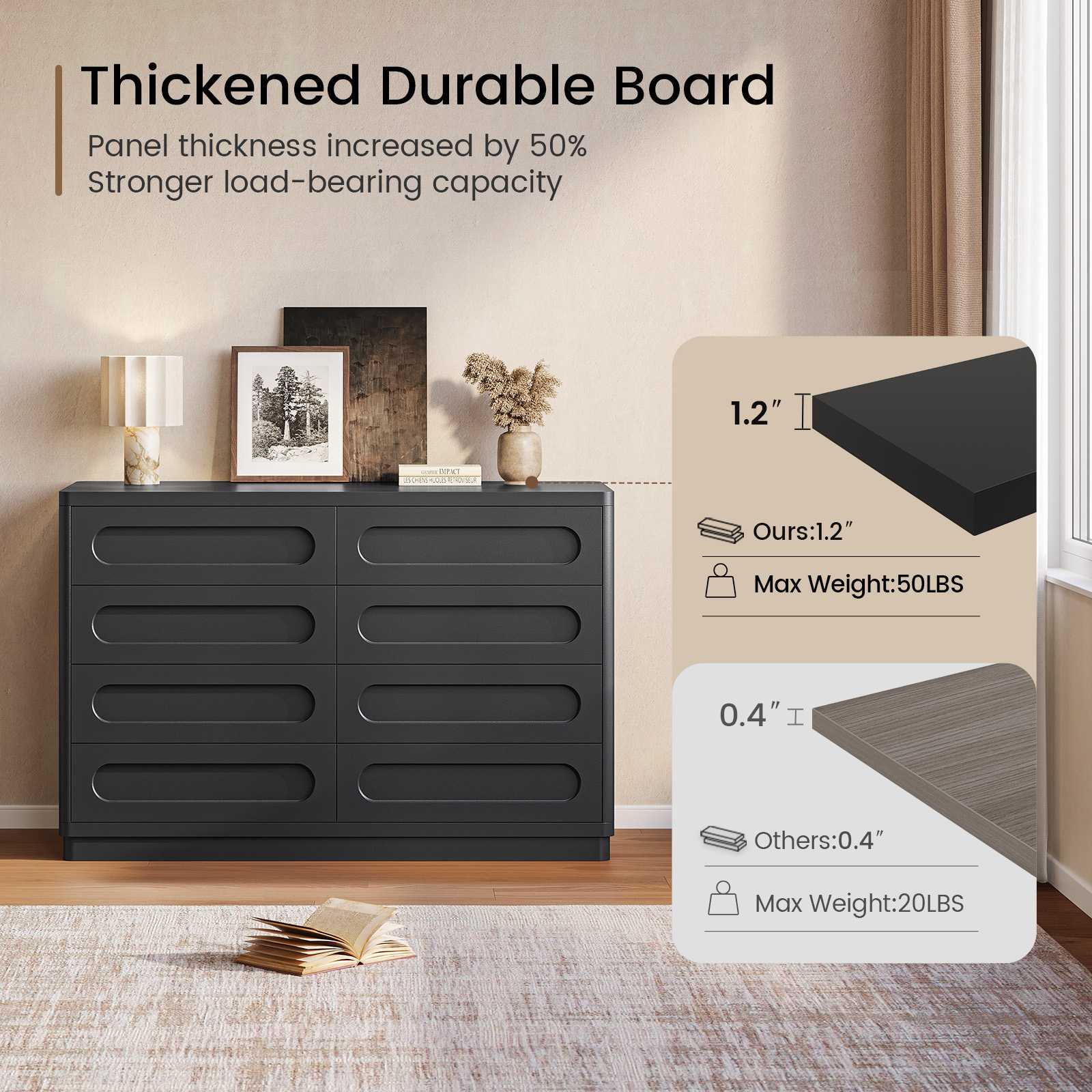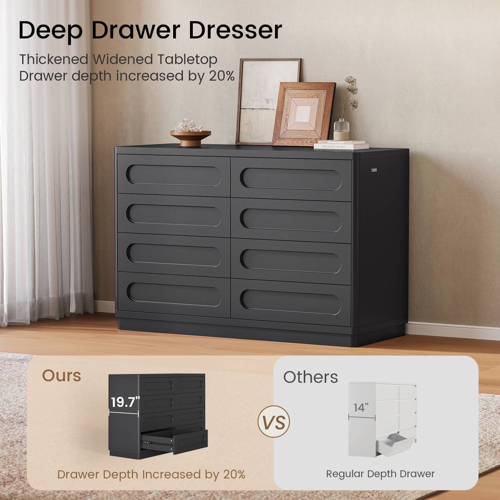 【Large Storage Capacity】The dresser for closet features 8 deep drawers that provide plenty of room for organizing clothing, bedding, cosmetics, or jewelry, helping you maintain a neat and tidy space. The wide wooden tabletop can serve as a dresser TV stand, or display your decorations such as photo frames, plants and mirrors