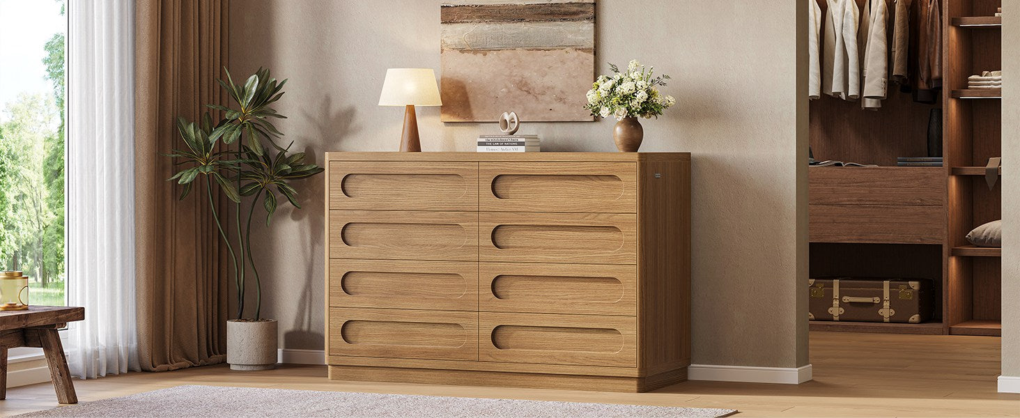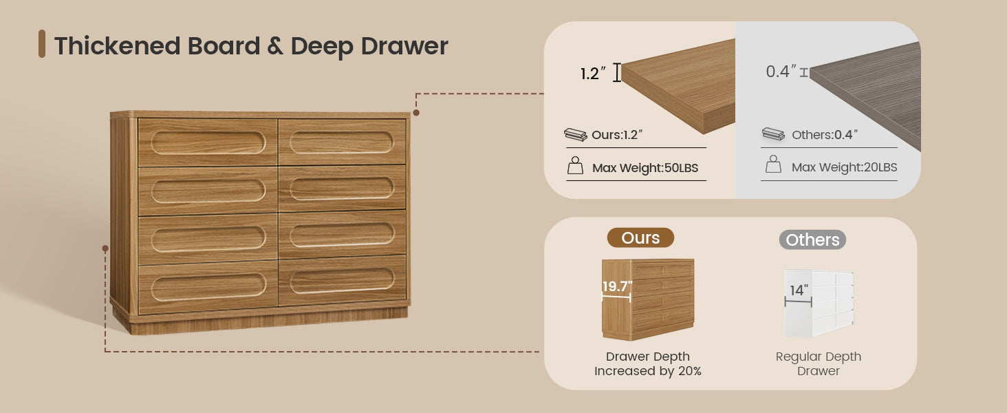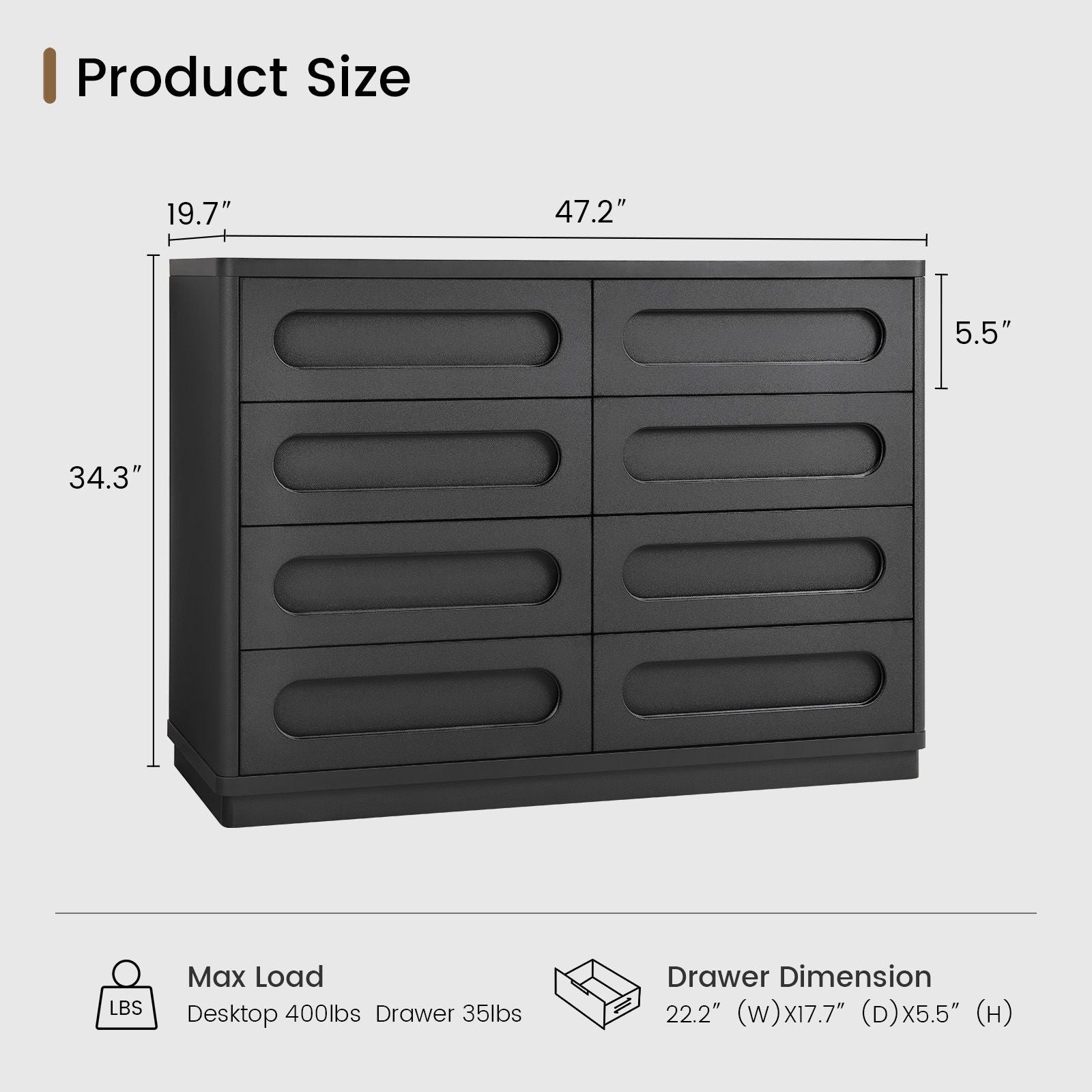 • Large Storage: 8 drawers + wide tabletop, holds clothes or decor.