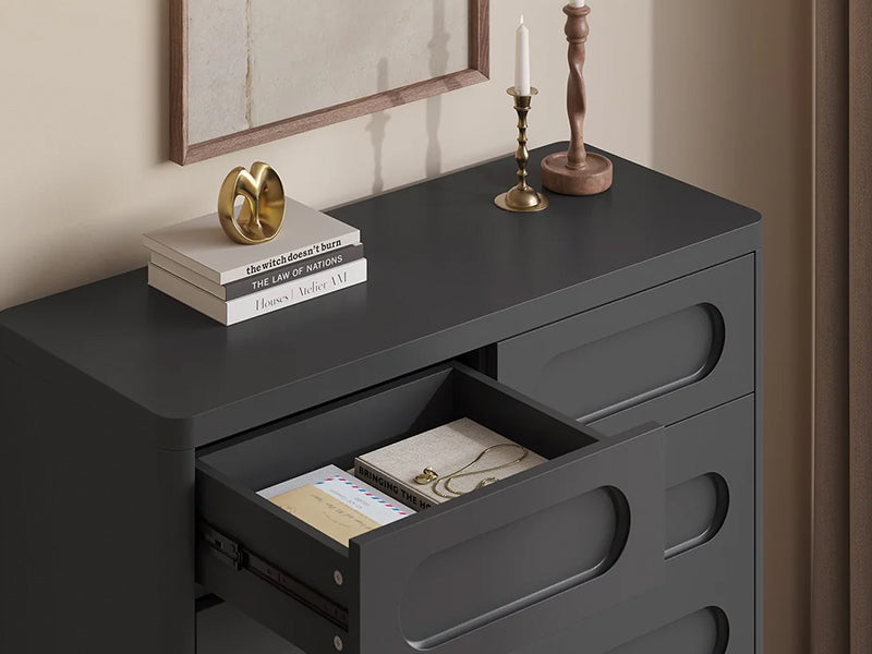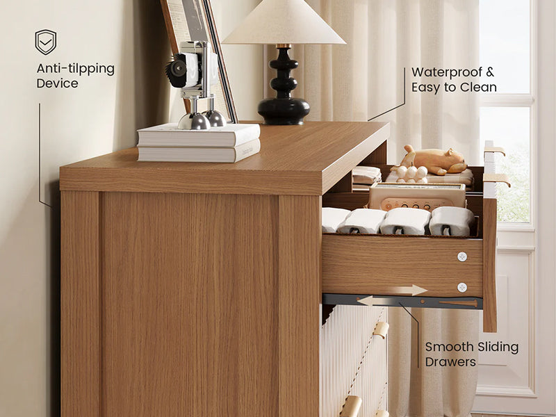 SUCSSRICH brand has excellent design concepts. Our furniture not only focuses on the embodiment of essential functionality, but also strives to create a home style space with aesthetics and practicality. We hope that furniture can bring vitality to the space while meeting basic storage needs, and enhance the atmosphere and elegance of the space. We will carefully control every detail in product design. The graceful lines and unique and exquisite handles can be seen in the design of our Fluted Dresser for Bedroom.