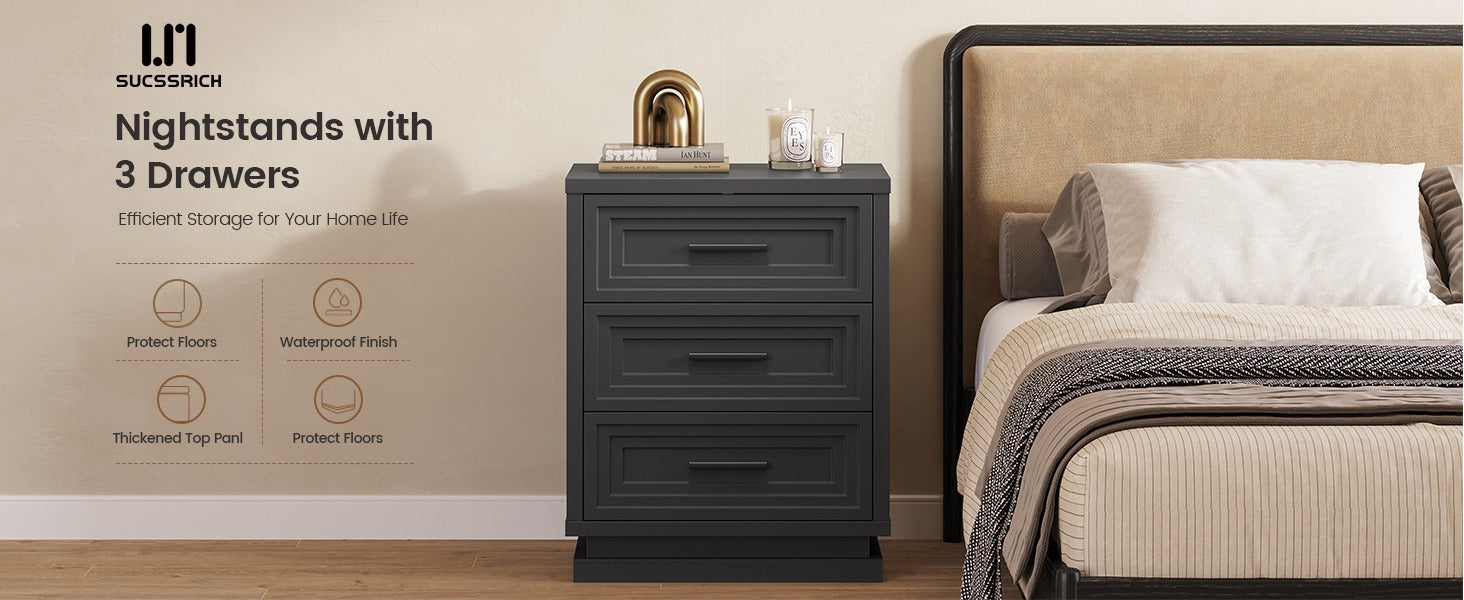 SUCSSRICH Modern Nightstand with 3 Drawers