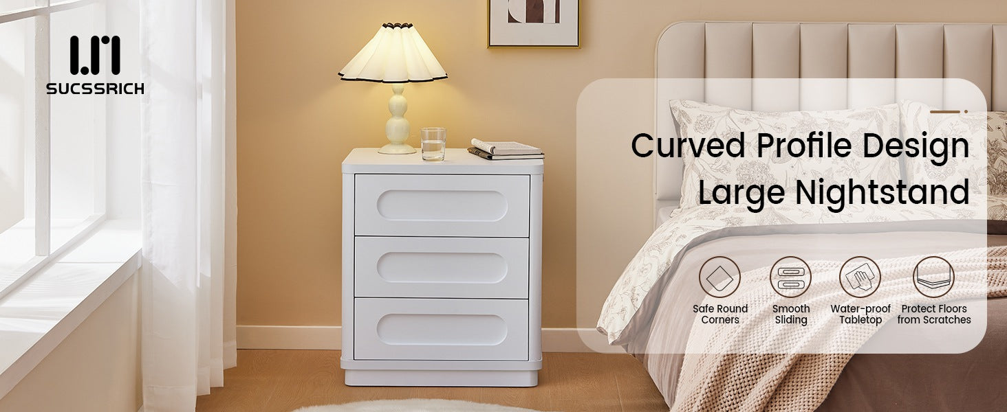 SUCSSRICH Large Night Stand with Modern Curved Design