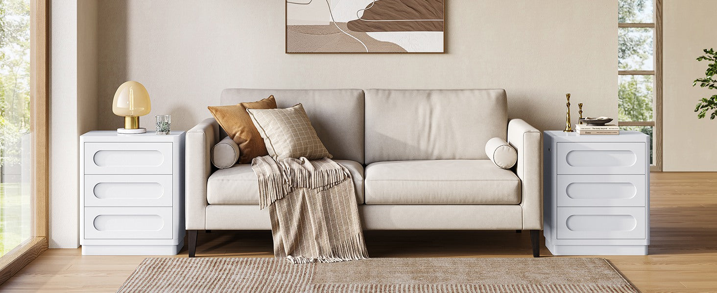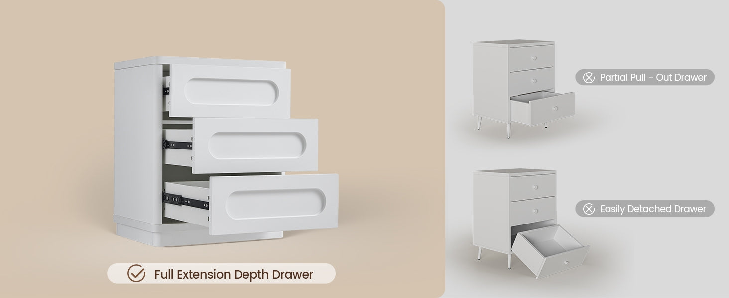 SUCSSRICH 21.7 Inch Nightstand with 3 Drawers Large Night Stand Bedside Tables for Bedroom Modern Storage Bedside Table for End Tables Sofa White