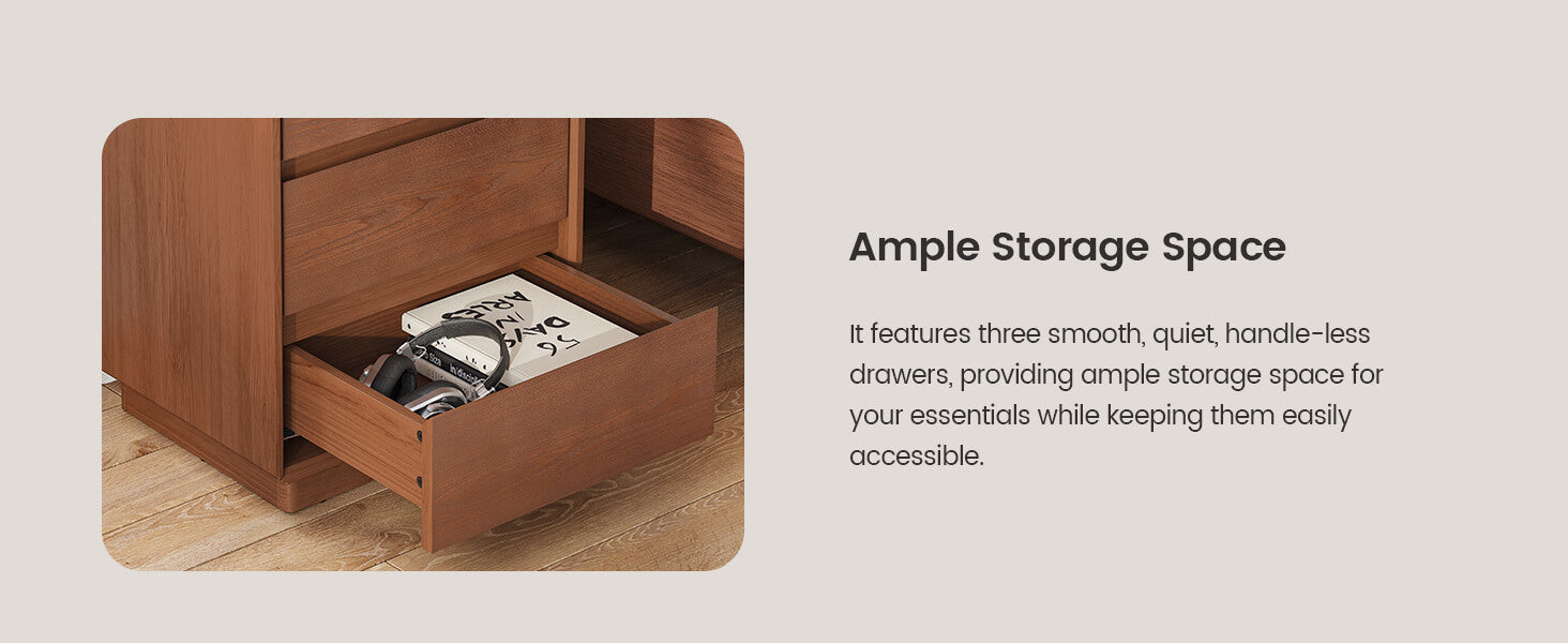 - Spacious Drawer Storage – Three handle-less, silent drawers with heavy-duty slides