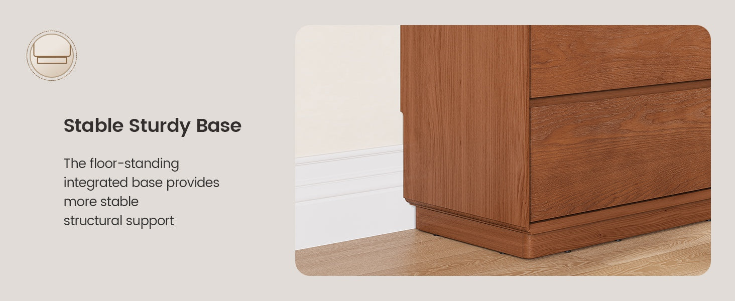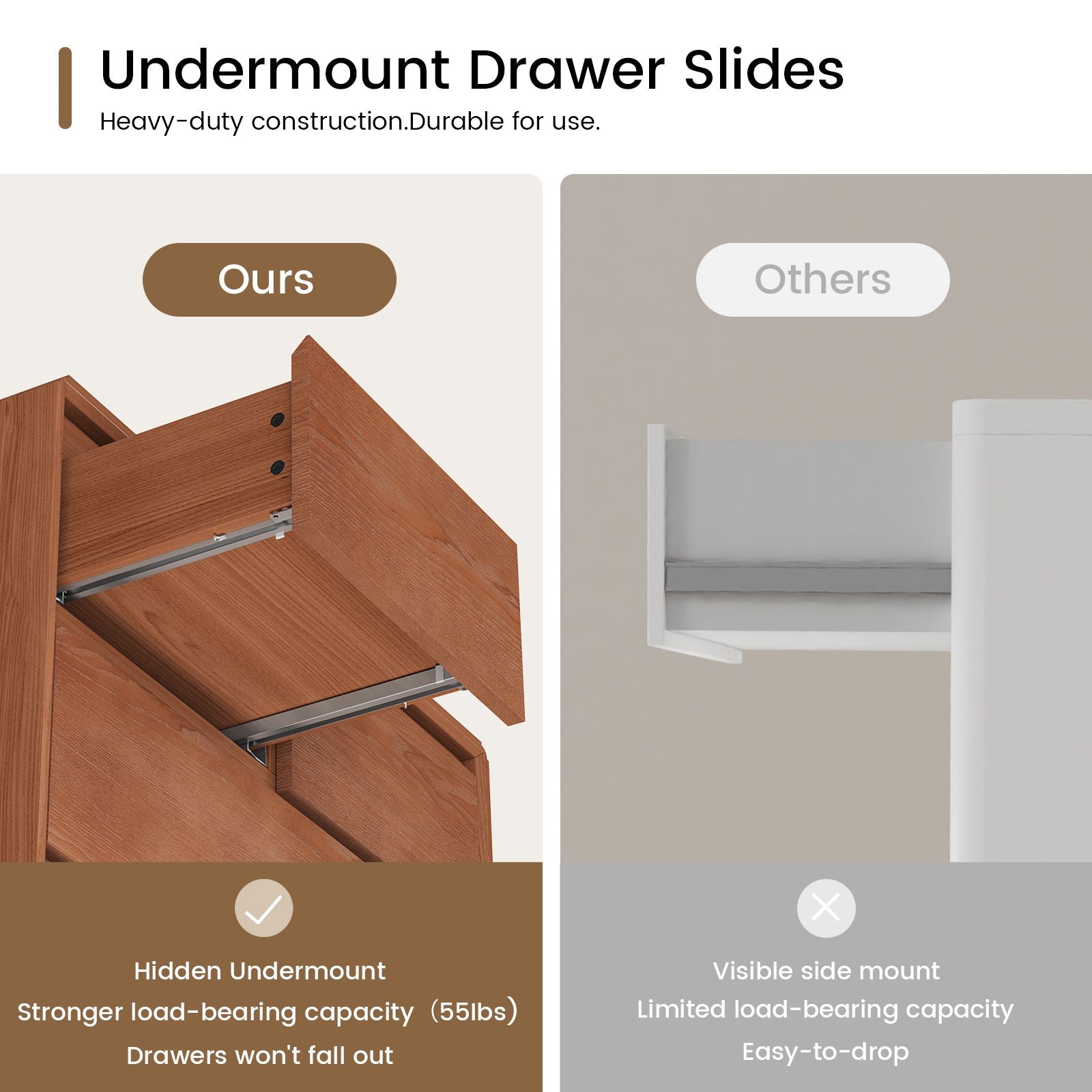 【Sturdy and Durable】The dressers & chests of drawers are designed for stability and longevity. The safe round corners of the tabletop, floor-standing base, and anti-tilt device greatly enhance safety. The feet can protect your floor from being scratched. The premium waterproof surface is easy to clean. The drawers open and close easily, and the slides are smooth and silent.