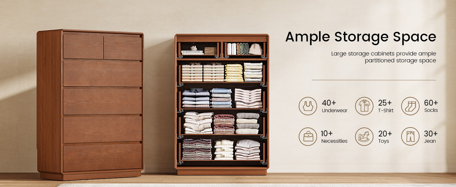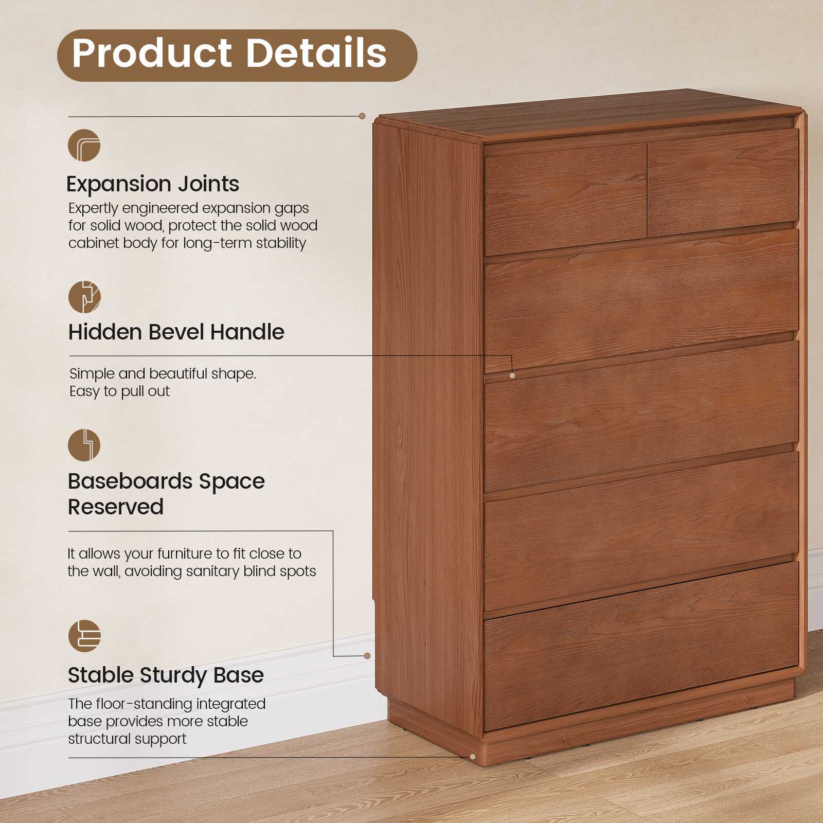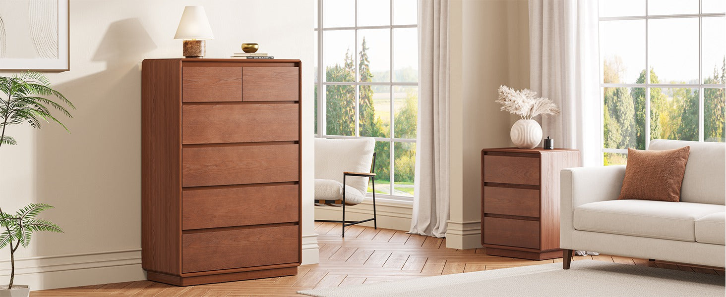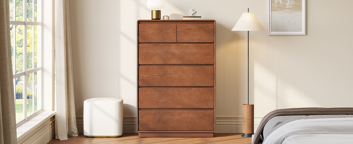 【Versatile & Functional】This mid century modern style closet dresser is suitable for the bedroom, living room, nursery, or entryway. It's natural solid wood grain complements any room. Multiple drawers make everyday storage more convenient and efficient, helping to keep your home tidy and organized.