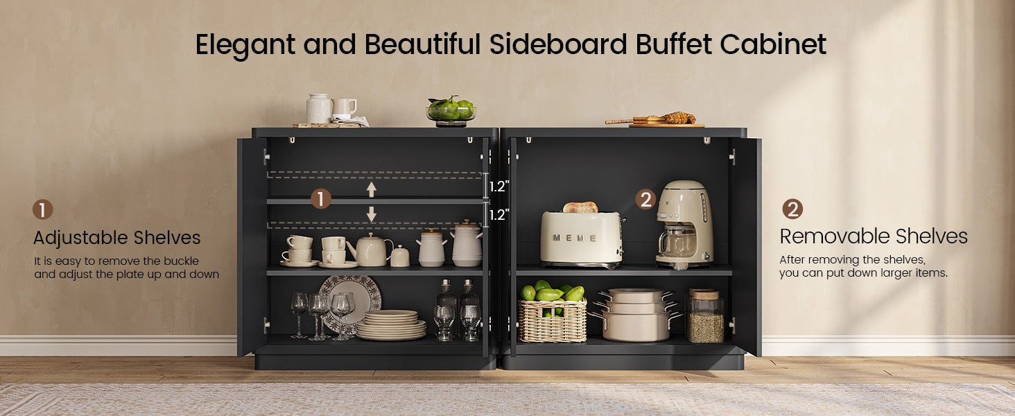 【Versatile Storage Cabinet】This accent buffet sideboard is perfect for any room, whether in the dining room, living room, entryway, or hallway. It can also be used as a sideboard, kitchen cabinet, TV stand, or coffee bar, meeting various storage and display needs while enhancing the functionality and beauty of any room