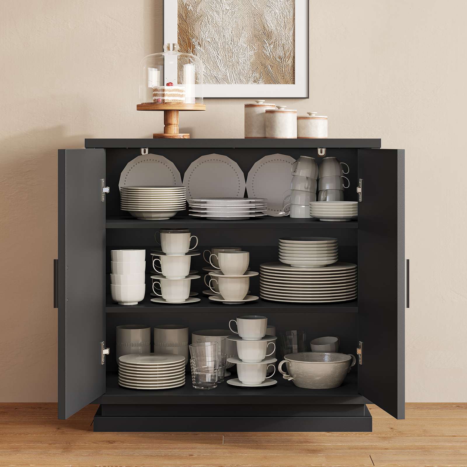 • Spacious Storage: 15.8"D × 31.5"W × 31.5"H, holds dishes, glassware, and essentials.