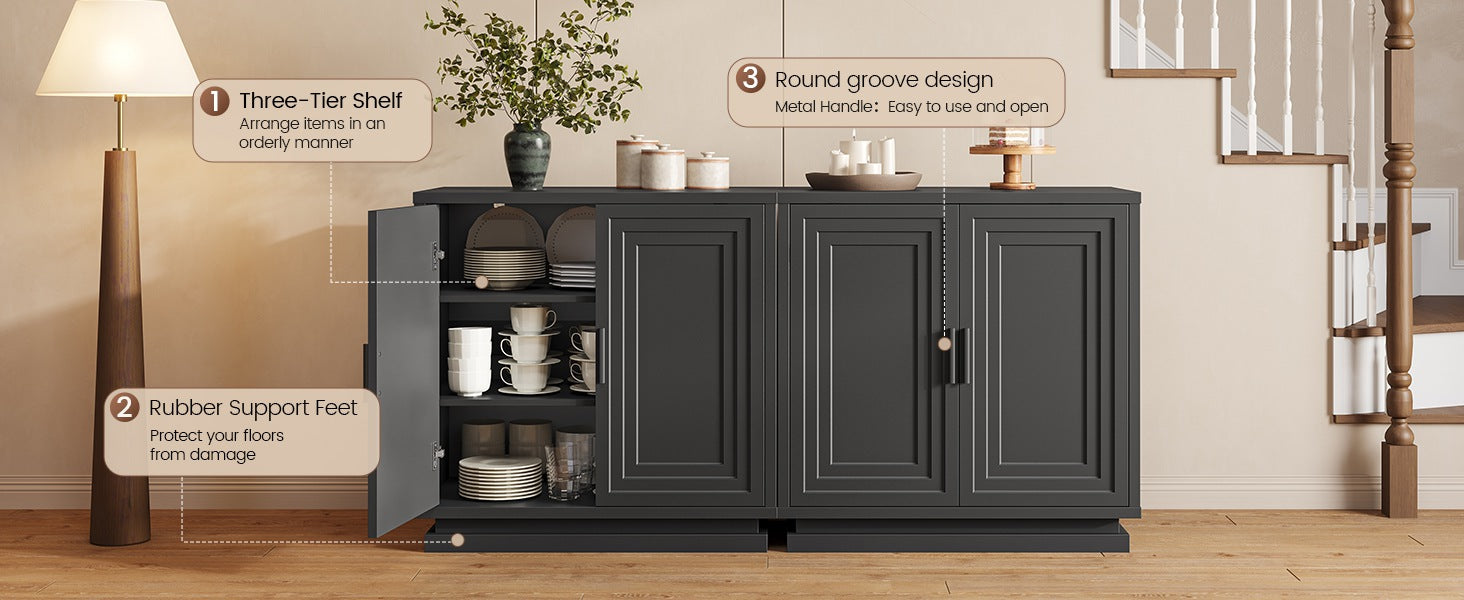 • Multi-functional Use: Works as buffet, hallway console, accent cabinet, or TV stand.