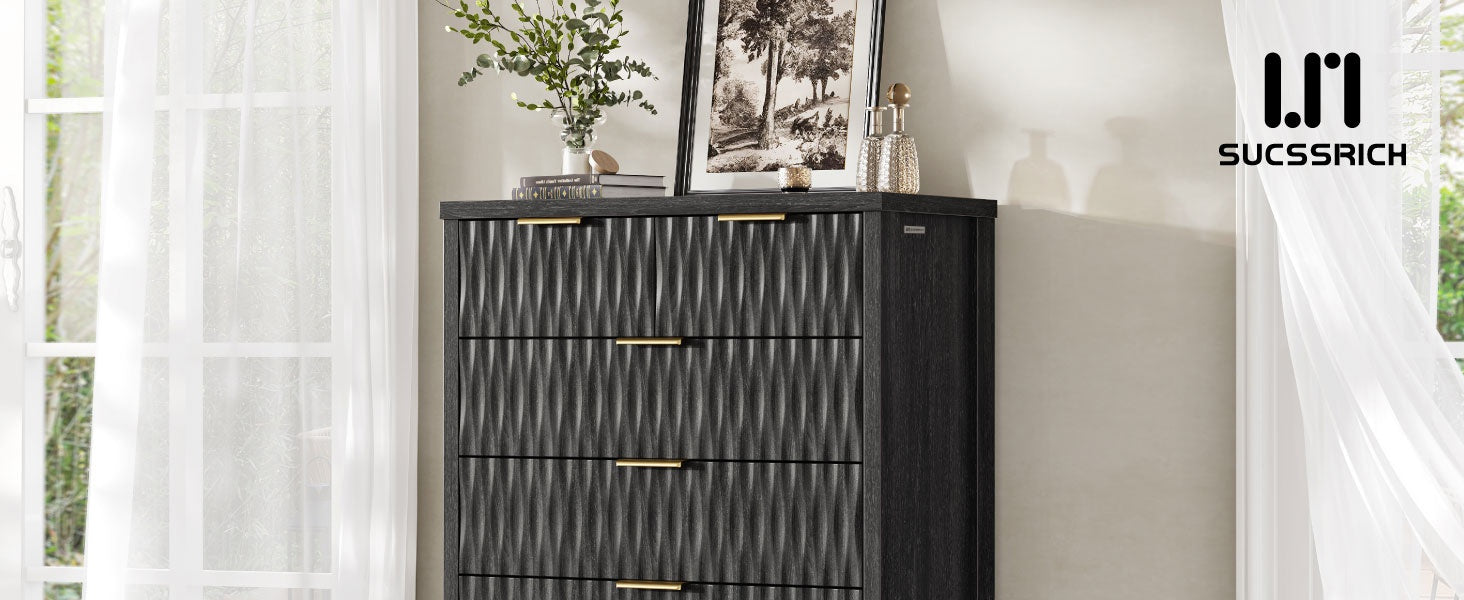 SUCSSRICH Tall Dresser with Fluted Design and Elegant Metal Handles