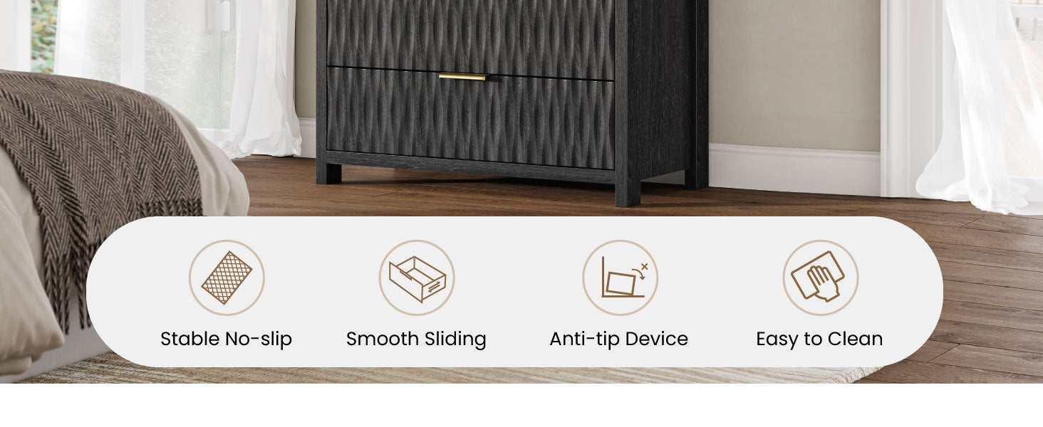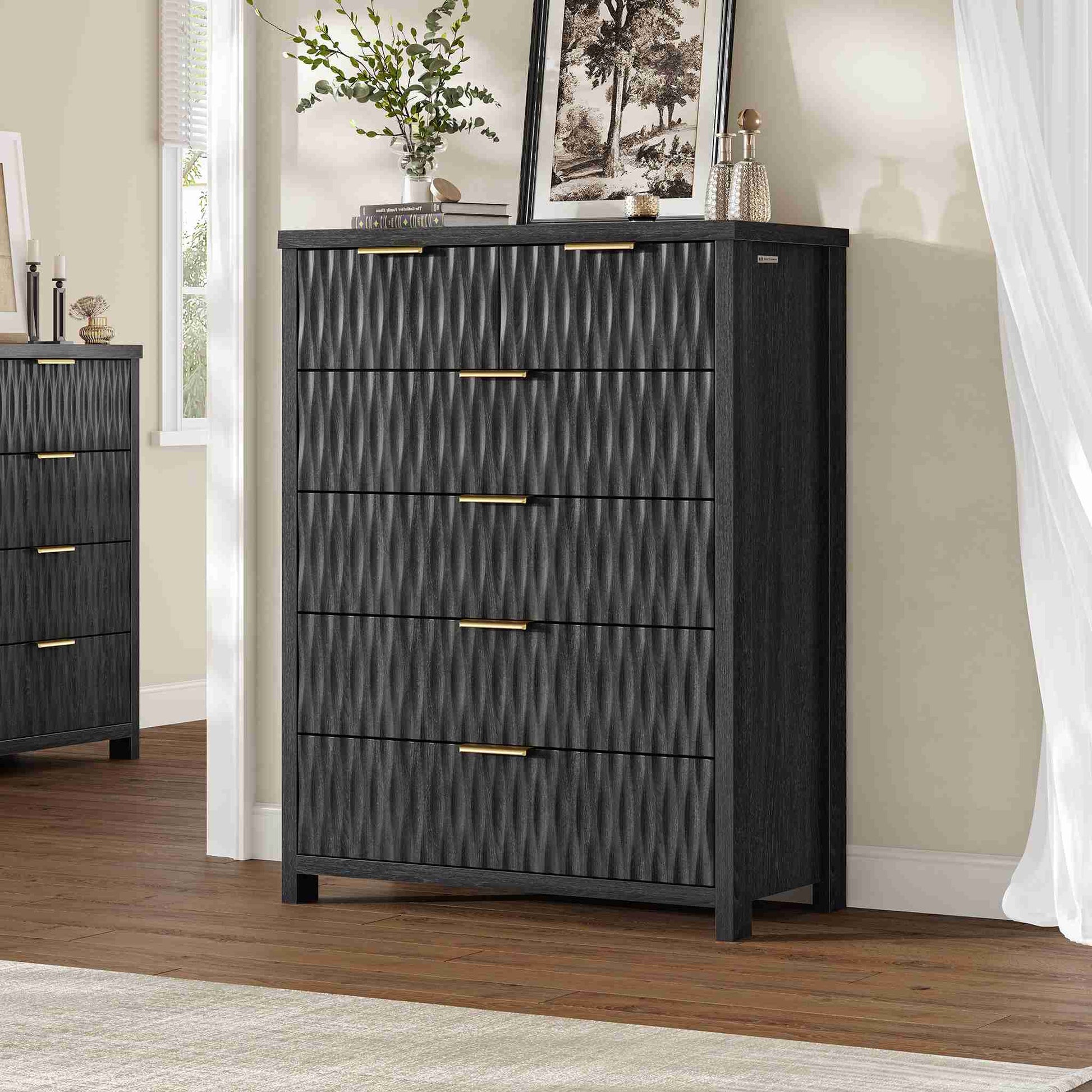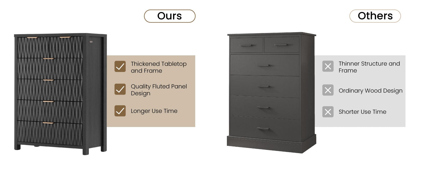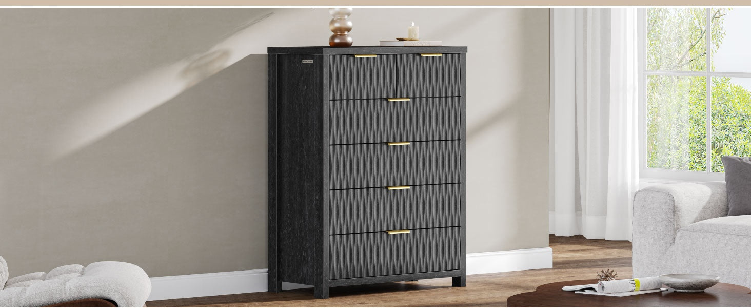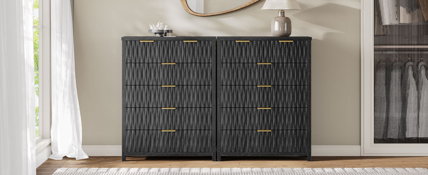 【Modern Chic Appearance】The unique wave-like fluted panel enhances the texture and elegance of this bedroom dresser, adding a touch of sophistication to your room. Its elegant metal handles harmonize with the fluted design, complementing any decor style. This dresser is ideal for your bedroom, living room, or hallway.