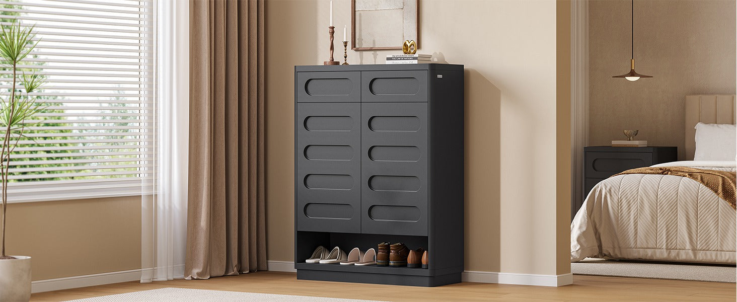 【Large Capacity Shoe Cabinet】This shoe cabinet measures 15 " D x 31.5 " W x 43.3 " H, with 6-tier shelves and 2 fully extendable top drawers. It's ideal for storing a variety of shoes. It's perfect for an entryway, hallway, or living room, adding a touch of class to your home