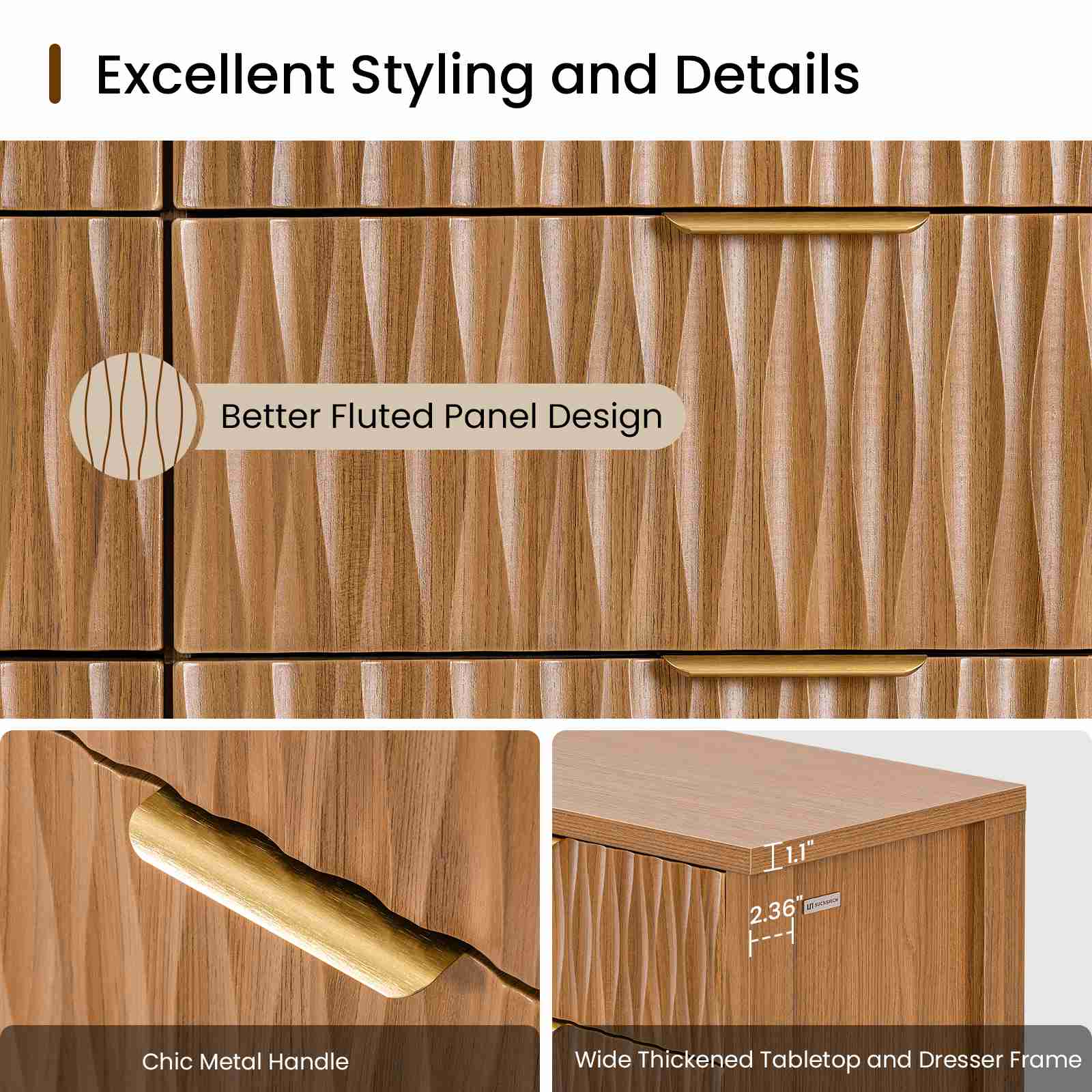 【Modern Chic Appearance】The unique wave-like fluted panel enhances the texture and elegance of this bedroom dresser, adding a touch of sophistication to your room. Its elegant metal handles harmonize with the fluted design, complementing any decor style. This dresser is ideal for your bedroom, living room, or hallway.
