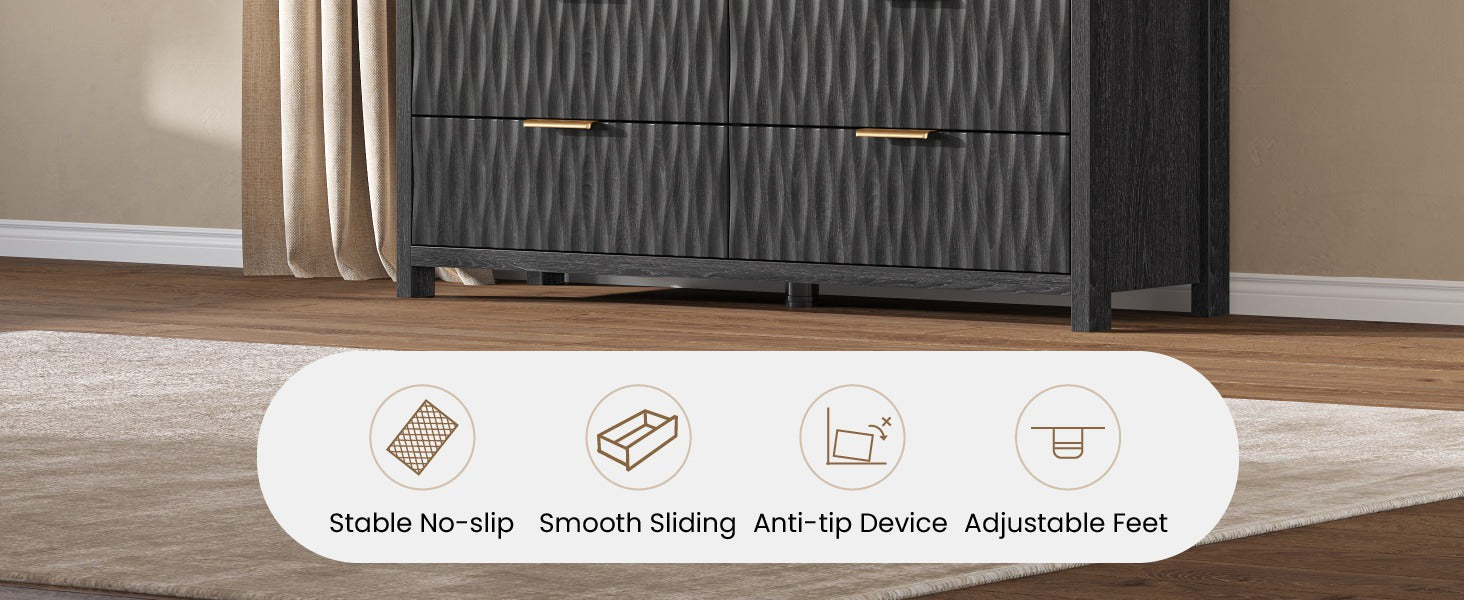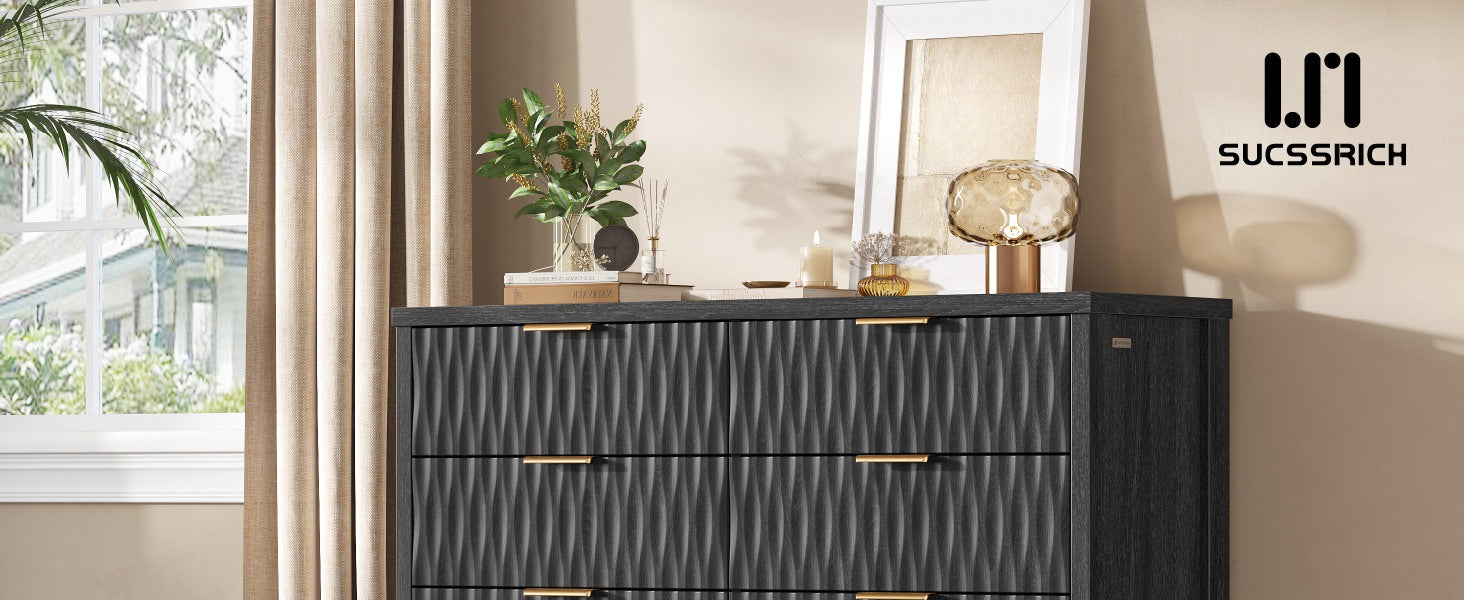 SUCSSRICH Modern Dresser with Wave-Like Fluted Panels