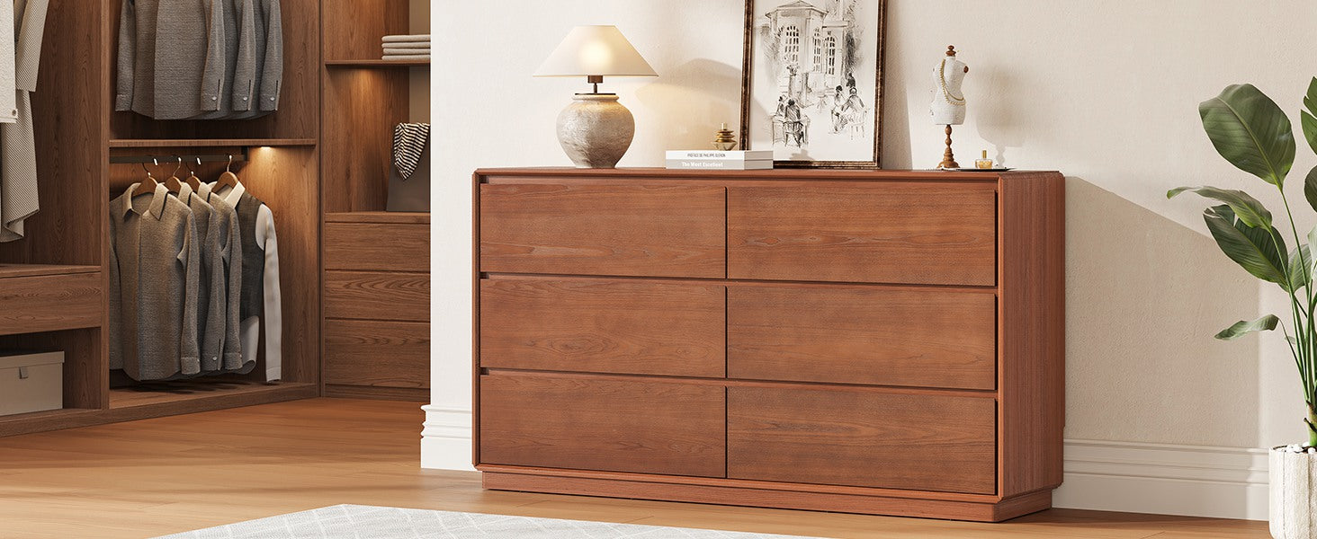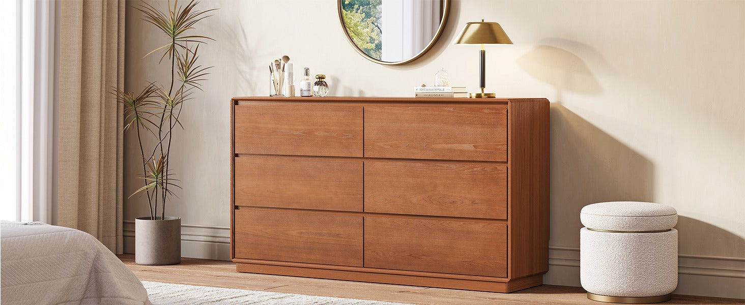【Solid Wood 6 Drawer Dresser】SUCSSRICH solid wood dresser for the bedroom is made of natural rubberwood. Premium solid wood construction ensures lasting durability with beautiful natural grain. Its elegant appearance complements any bedroom and living room style. You can place it next to the bed to enhance the beauty of your bedroom, or in the living room to enhance your living space.