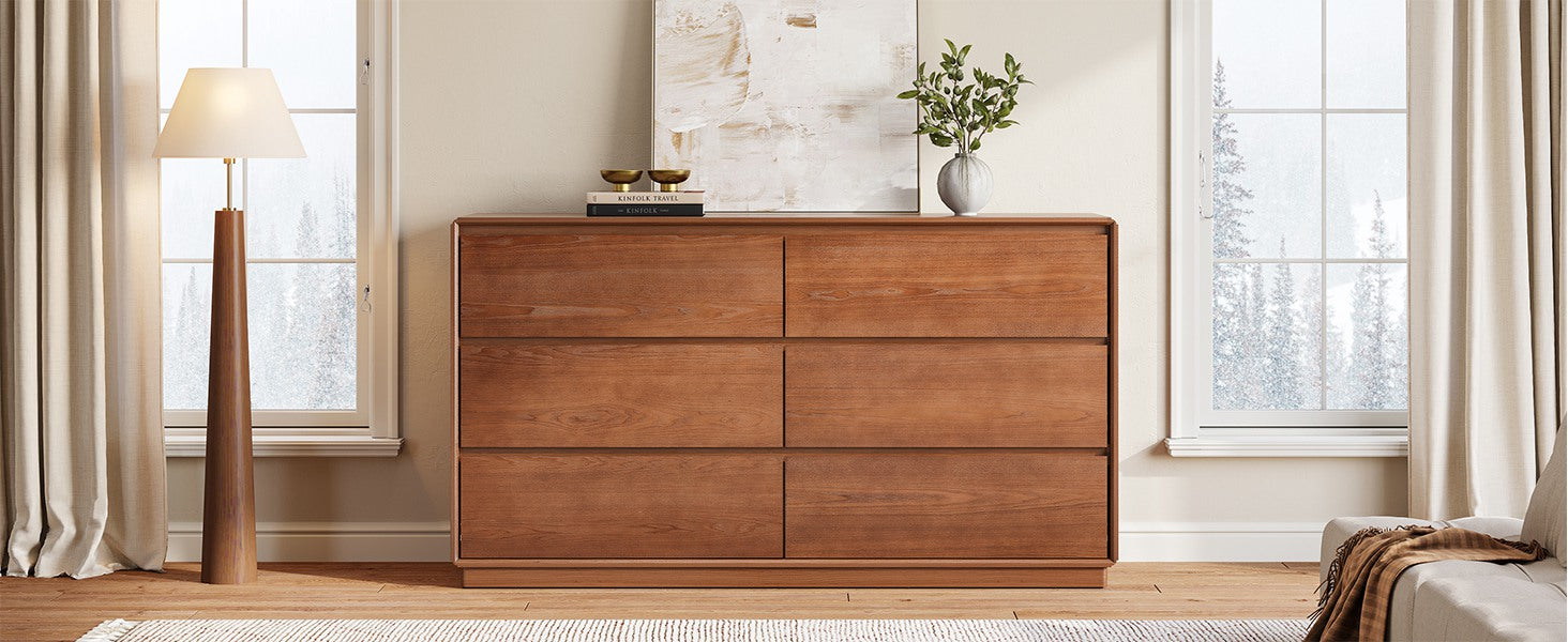 SUCSSRICH Natural Solid Wood Wide Dresser