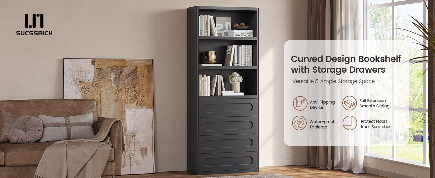 SUCSSRICH Bookcase with Modern Curved Design