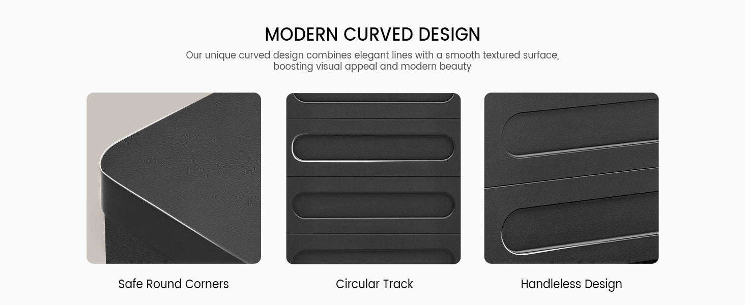 • Modern Curved Design: Smooth curved shape, rounded corners.