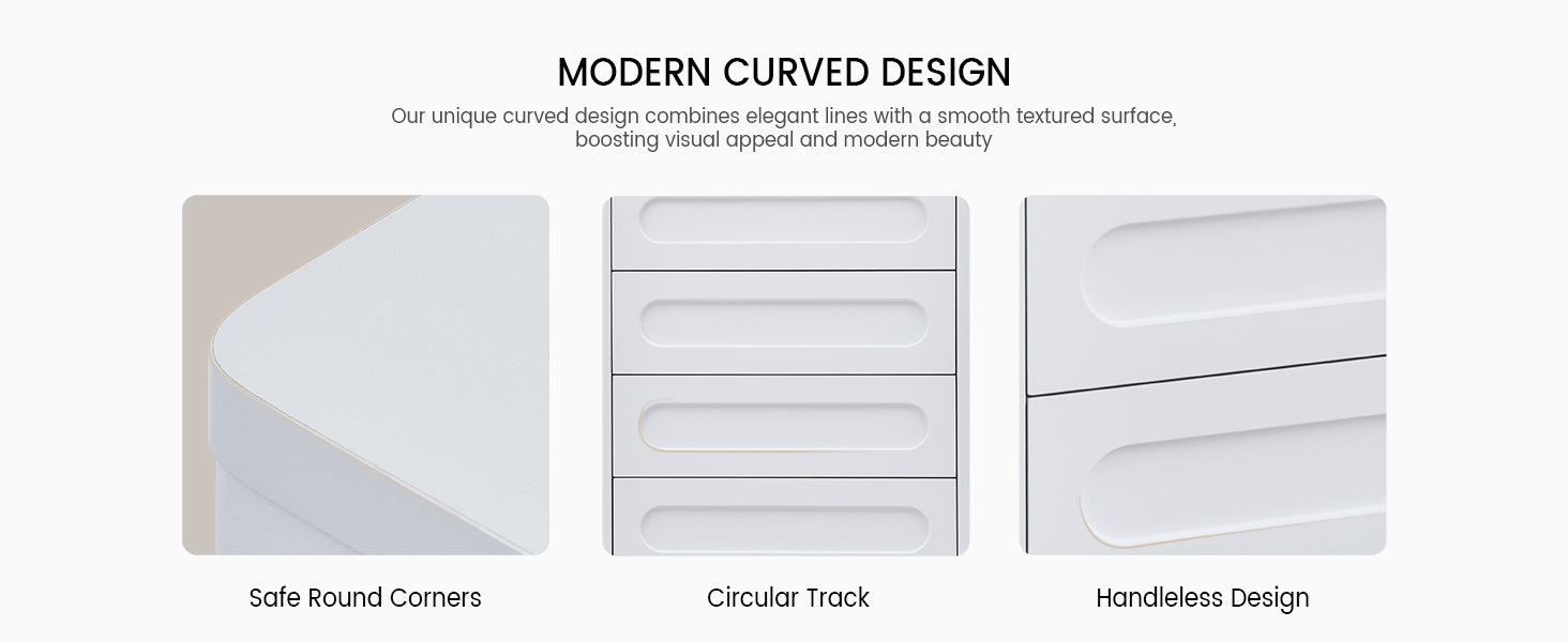 • Modern Curved Design: Smooth curved shape, rounded corners.