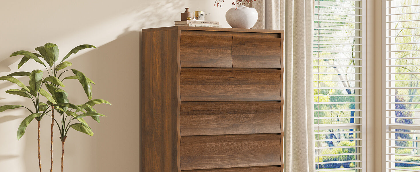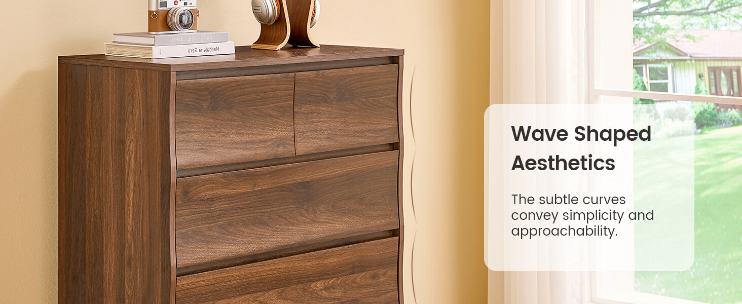 A tall, space-saving layout with a mix of large and small drawers to keep everyday items neatly organized. - Wave-Inspired Design