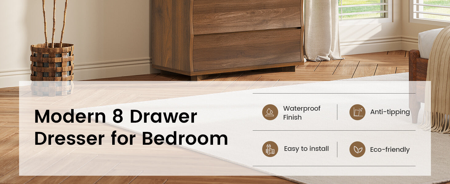 SUCSSRISH 61 Inch Tall Brown 8-Drawer Dresser – Bedroom/Hallway Storage Chest