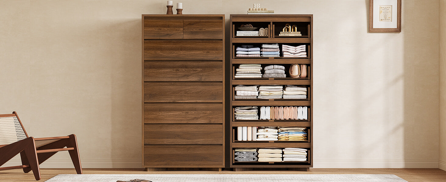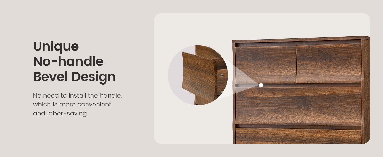 【Modern Vertical Dresser】The unique no-handle bevel design of the modern dresser combines minimalist style with excellent storage capacity, no need to install the handle, which is more convenient and labor-saving. Add a modern touch to your home decor, blending seamlessly with contemporary or minimalist interior styles.